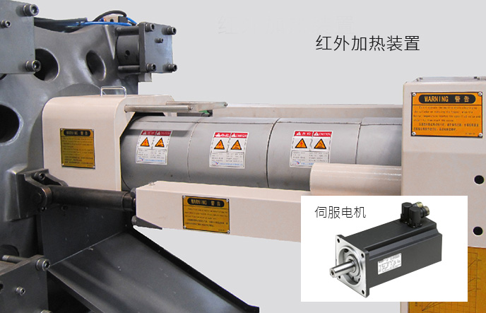 伺服驅動器在鎖模保壓冷卻等階段能輸出最大壓力但保持速度接近零速,因而功率消耗小,更節(jié)能 料筒采用納米遠紅外高效節(jié)能加熱裝置,改善了傳統加熱圈電熱轉換效率低、熱傳導率低、表面溫度高“兩低一高”缺點,比傳統加熱圈節(jié)能30%-40%